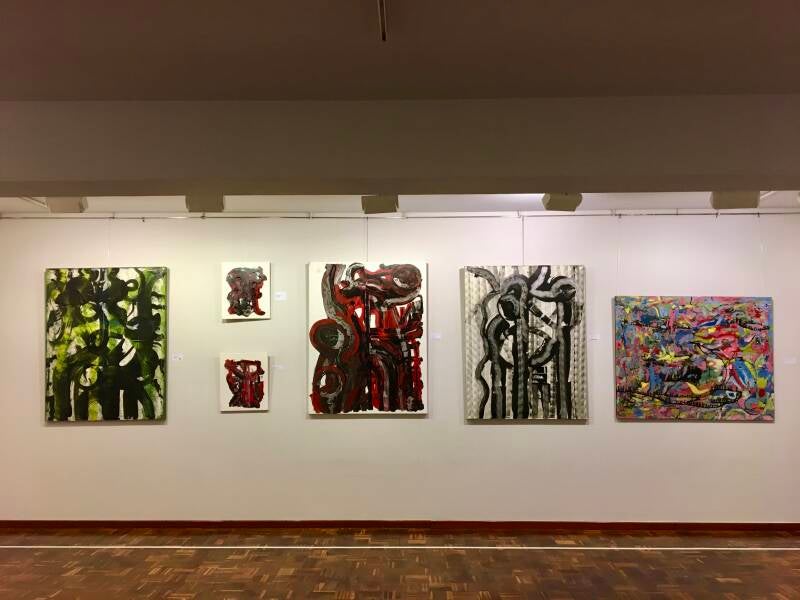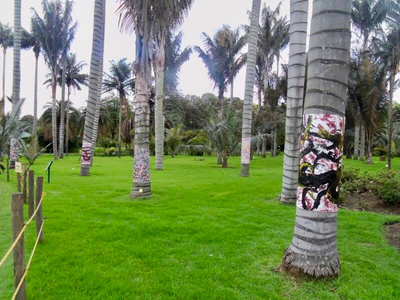 INSTALACION DE 5 LIENZOS EN LAS PALMERAS DEL JARDIN BOTANICO DE BOGOTA. COLOMBIA. AÑO2012